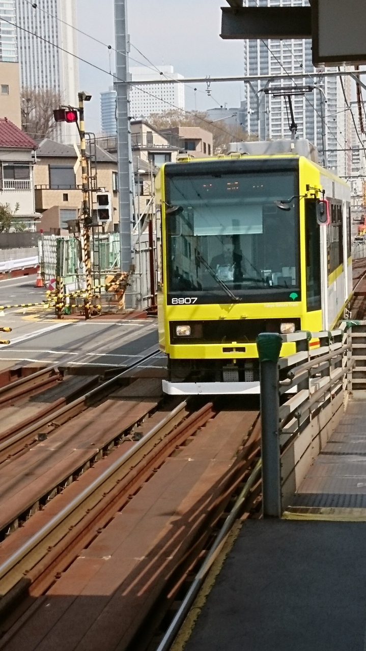 仕事で早稲田に商談があり、都電に初めて乗りました。朝10時過ぎの車両に乗りましたが、満員でした。途中で早稲田方面に向かう歳に面影橋を渡る時に、川の両サイドの満開のサクラを見て、車両内に歓声が上がりました。