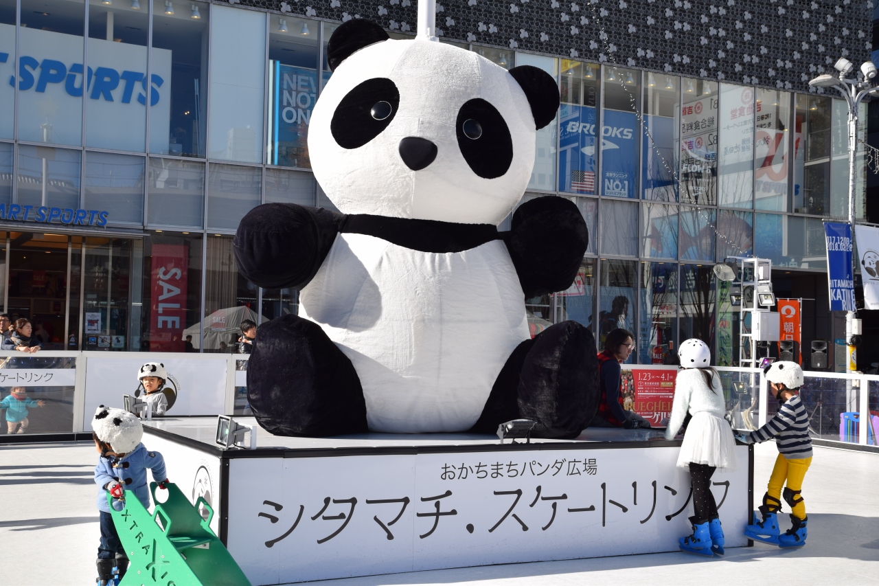 パルコヤの線路側に「おかちまちパンダ広場」があり