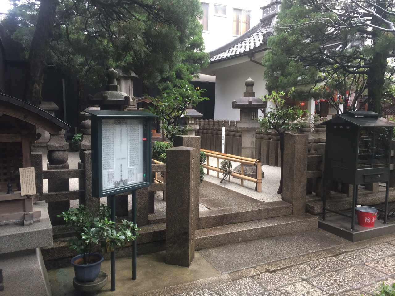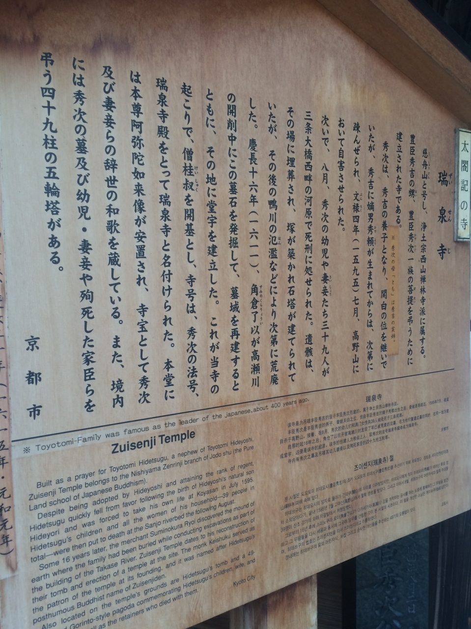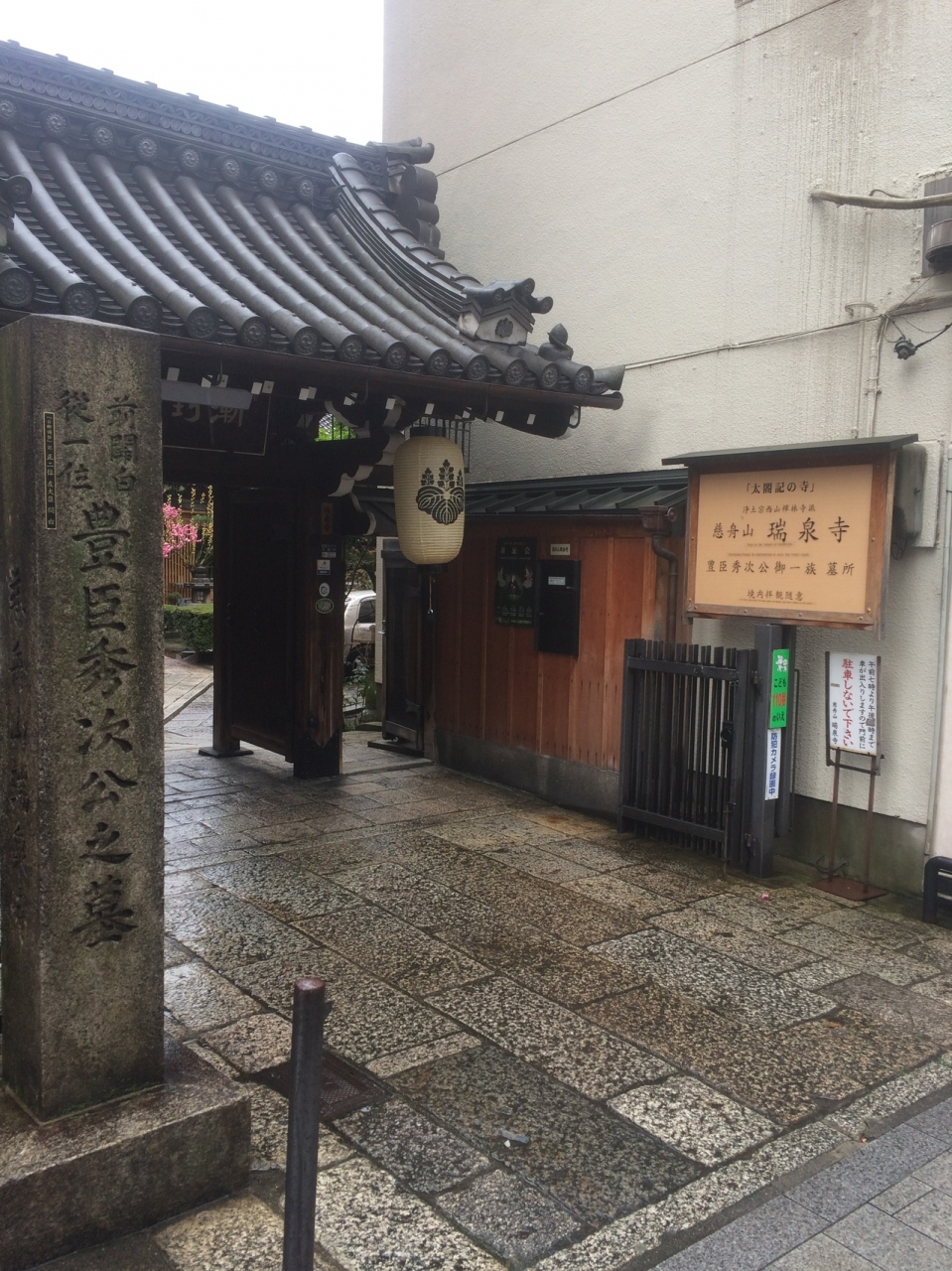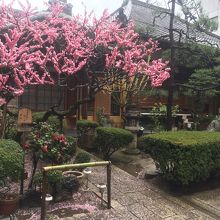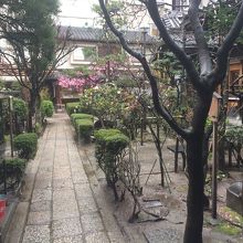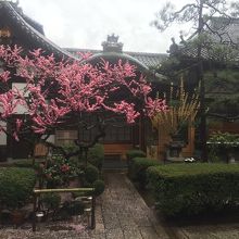 ビルので谷間にあり、豊臣秀次を弔う寺なので歴史ファンぽい人が幾人かいました。小さな境内で入ると、秀次に関する新聞記事等が掲載されミニ博物館のでようでした。奥に供養塔などがあります。境内の梅の実花が綺麗でした。