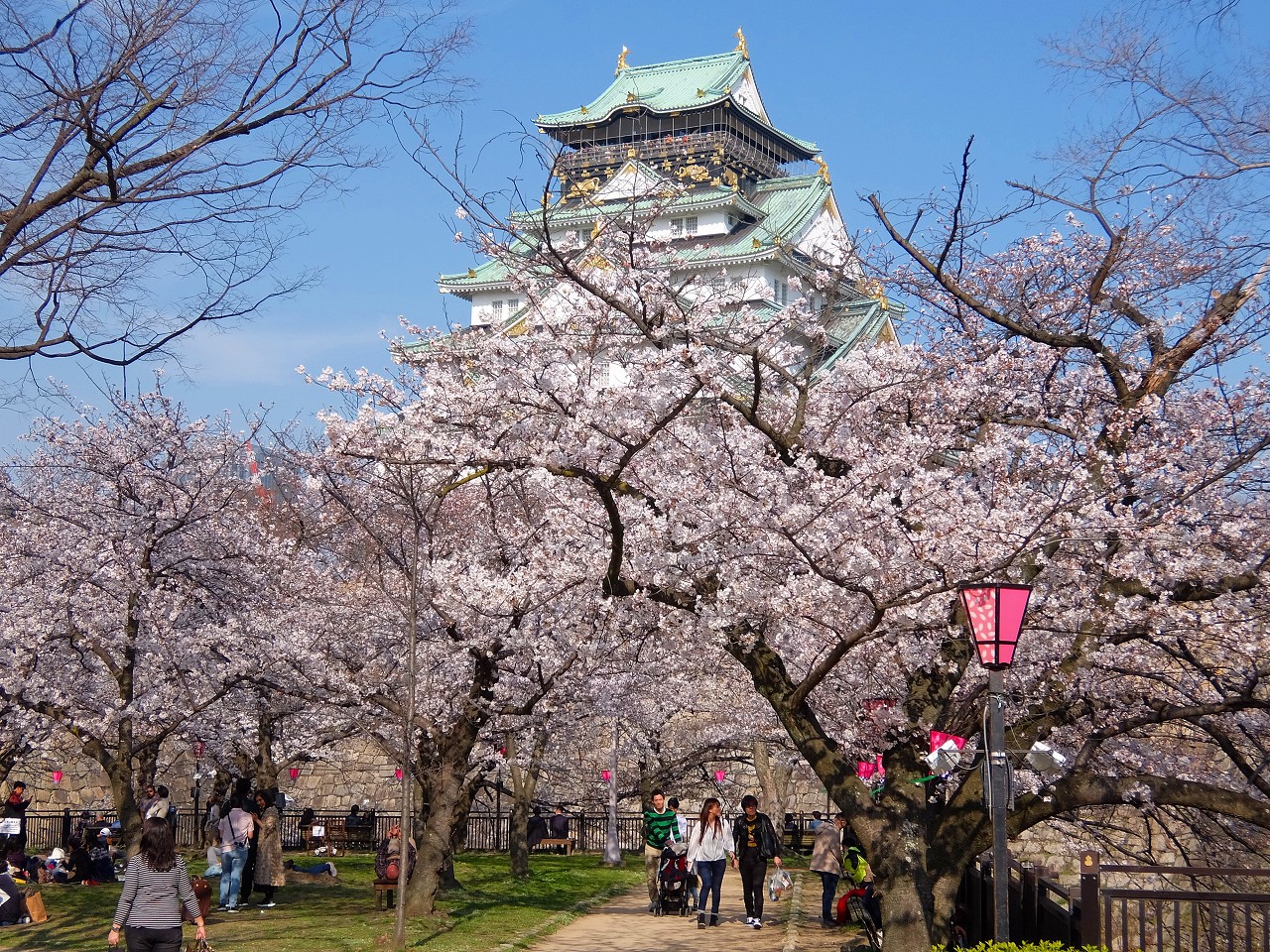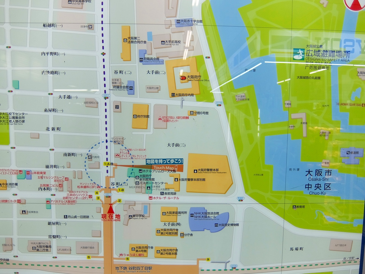 大阪駅から東梅田へ行き、地下鉄に乗って谷町四丁目で降りると近いです。最も便利な出入口は階段しかないので、高齢者には少しきついかもしれません。地図を見ると1-A出口にエレベータがあるようです。西の丸庭園入口に「ここからは天守閣へは行けません」と書かれています。桜を見て天守閣にも行こうという方はルートを選ぶ必要がありそうです。桜は八分咲きで、人も多くなくて良かったです。