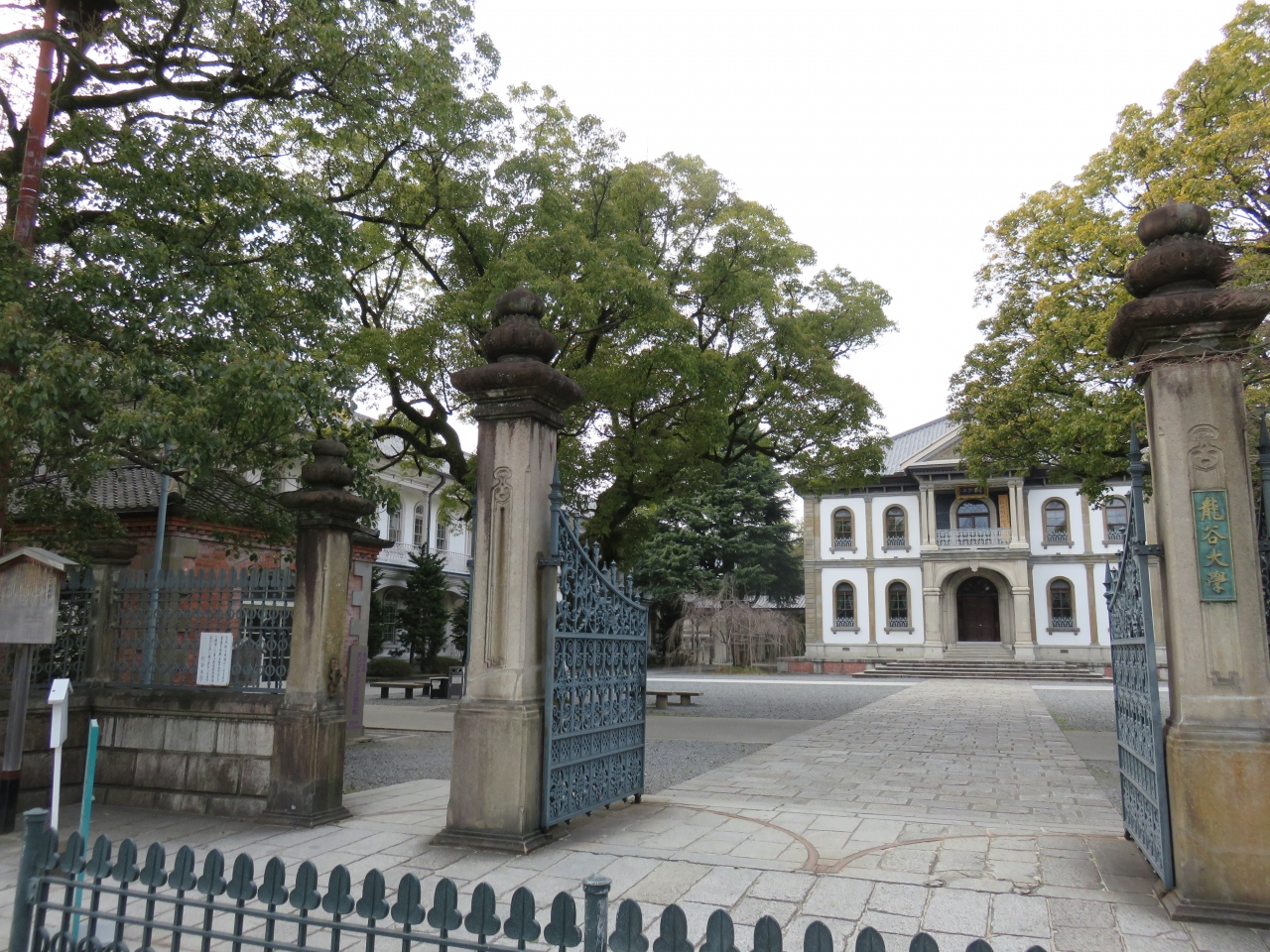 JR京都駅から七条通りを西へ15分程度、西本願寺の西側に龍谷大学、大宮キャンパスがあります。道からみてとても素敵な洋館に見えたので、中に入れるかどうかとりあえず行ってみました。入口の管理室に聞いたところ建物内には入れないが、その周りはOKとのことで、入ってみました。建物がいくつかあって、それも異なった洋館が並んでいて、まるで洋館ホテル。一見の価値がありま。