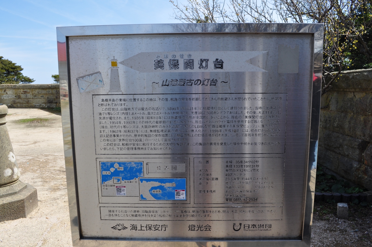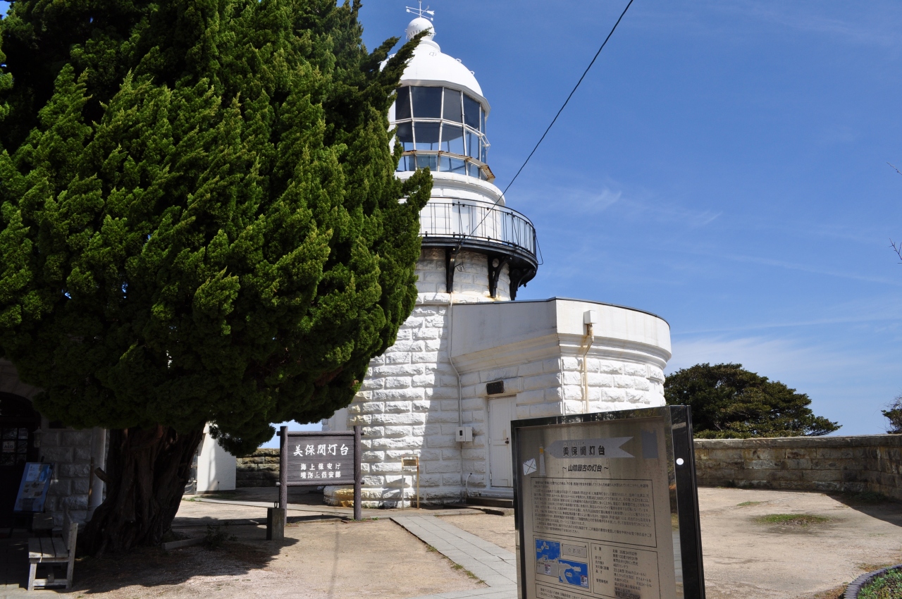 美保関灯台は島根半島の東端の地蔵崎に位置する灯台です。1898年に完成した灯台で、山陰地方にある灯台としては最古の灯台となるそうです。無人の灯台で、中に入ることはできませえんでしたので、灯台の周囲から見学することしかできませんでしたが、白く美しいつくりの灯台でした。