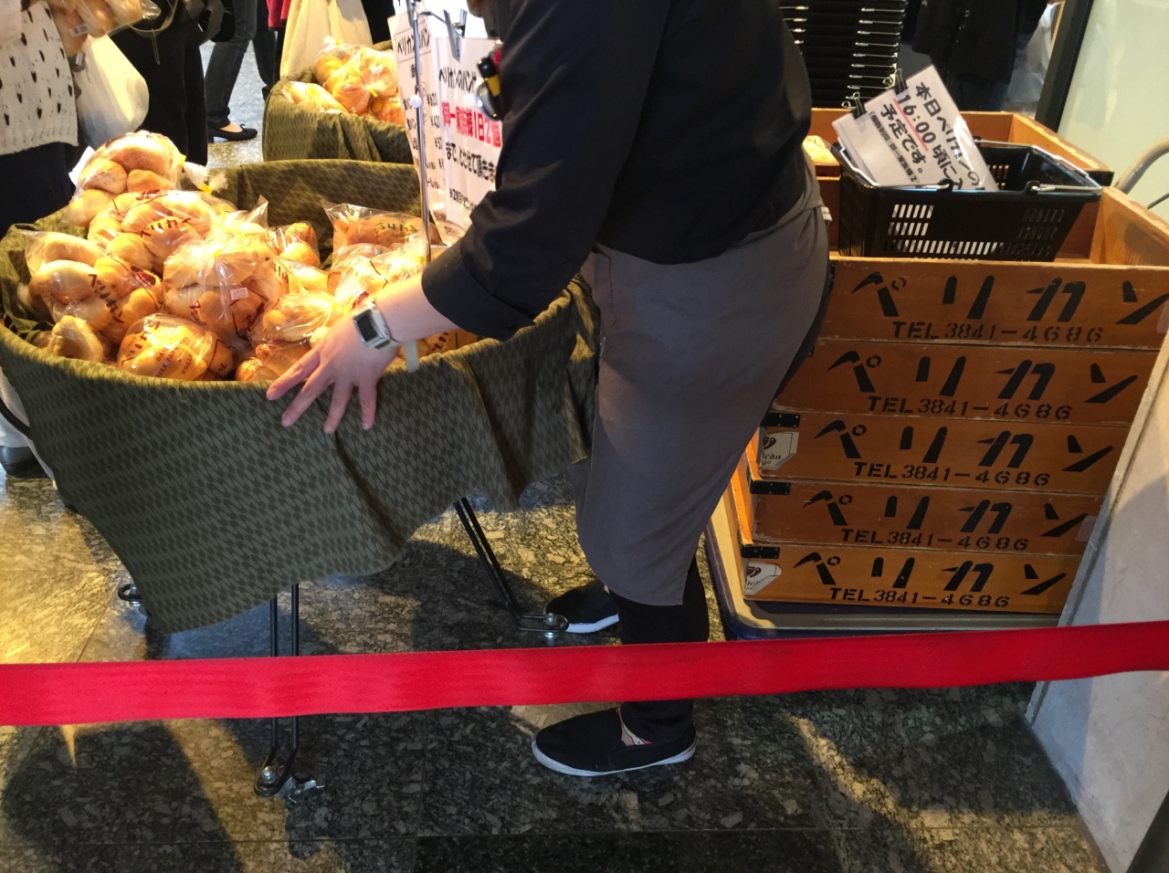 15:40頃駅に着いて、いい時間だったので並びましたが、何かのトラブルで20分近く遅れてパンが納品されました。