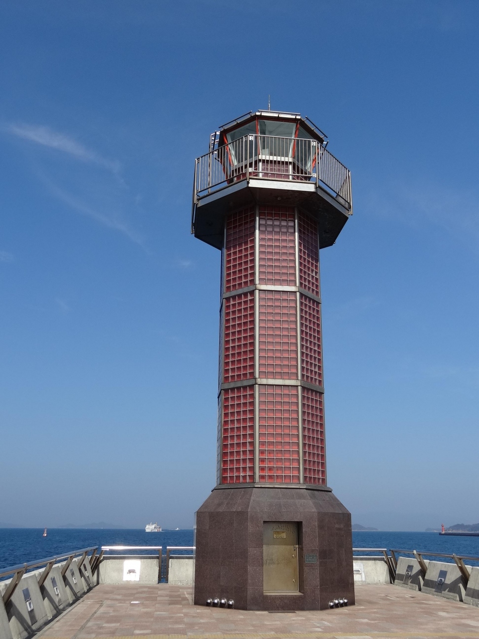 高松港からおよそ500mほど瀬戸内海に伸びている防波堤の先端に建つ、通称「赤いガラス灯台」がシンボルになっています。灯台までの防波堤は階段があってもスロープが完備していて車椅子でも通れます。防波堤の所々に椅子やベンチがあり、モダンな街路灯がずっと灯台まで立っていて、遠近感のある素晴らしい景観を作っています。時折、大きな遊覧船が沖へ出るので、いい写真対象になります。赤いガラス灯台の周りにもベンチがあるので、ゆっくり海や船を眺めながら、ゆったりと時間が過ごせます。高松港に来たなら絶対おススメのスポットだと確信しています。