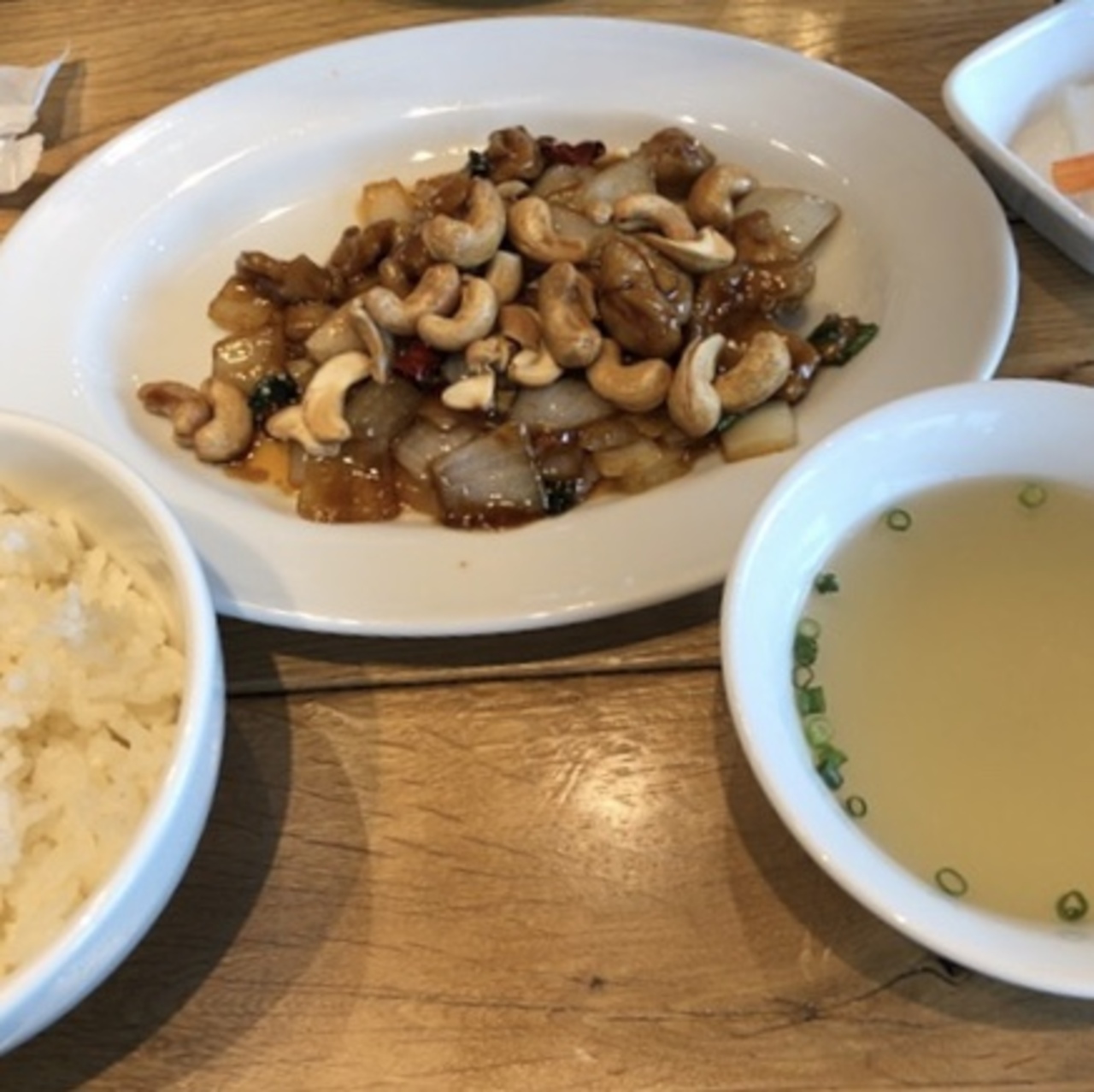 鶏とカシューナッツ炒めを食べましたが、タイ米の炊きあがりが絶妙なパサパサ加減で良かったです。