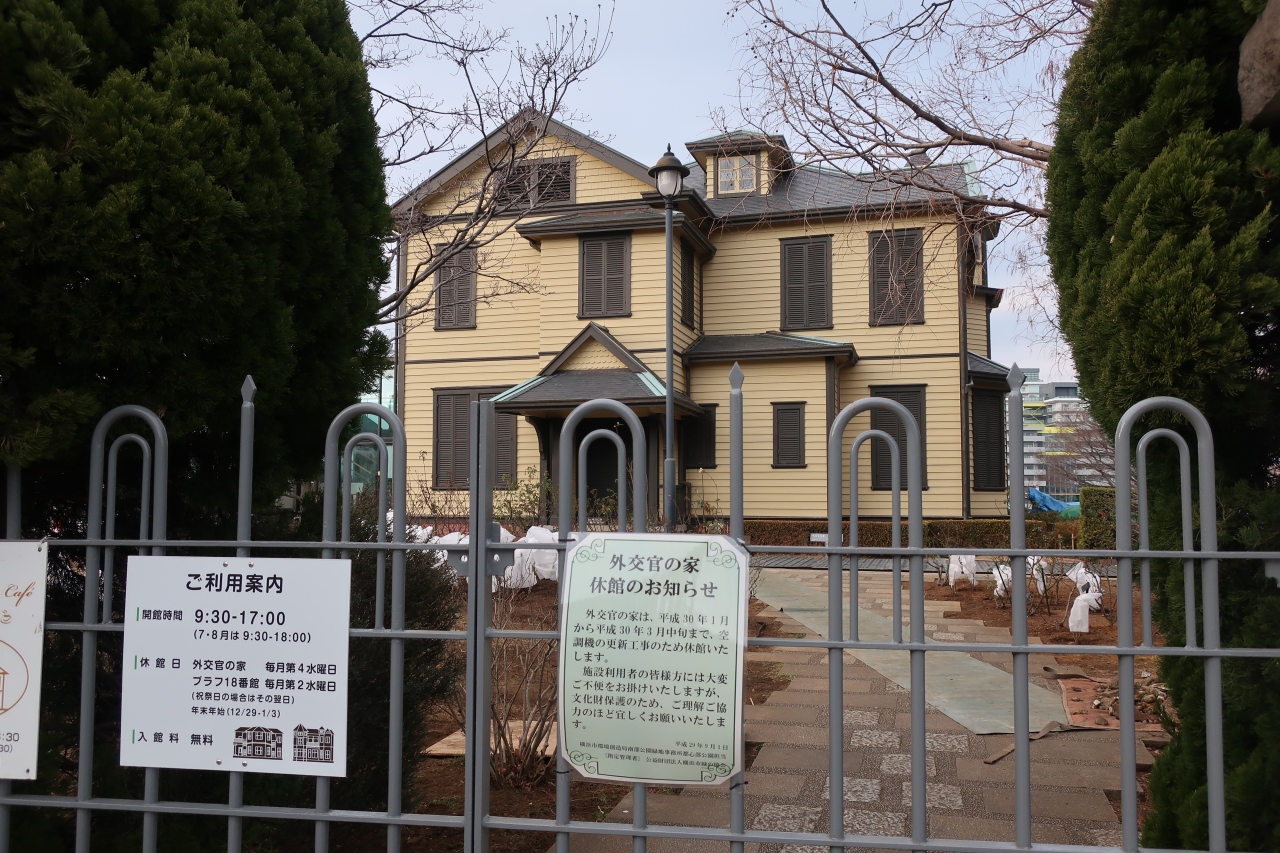 石川町駅から大丸谷坂を回り込む様に上った先に山手イタリア山庭園があり、その一段高くなった西側にある洋館が外交官の家です。明治43年に渋谷の南平台に建てられた外交官であった内田定槌の邸宅を移築したものです。アメリカン・ビクトリア様式の洋館は重厚感があります。しかし訪れたときはリニューアル工事の為に3月まで休館中で、外から内部は覗けましたが、中に入って見学できなかったのが残念です