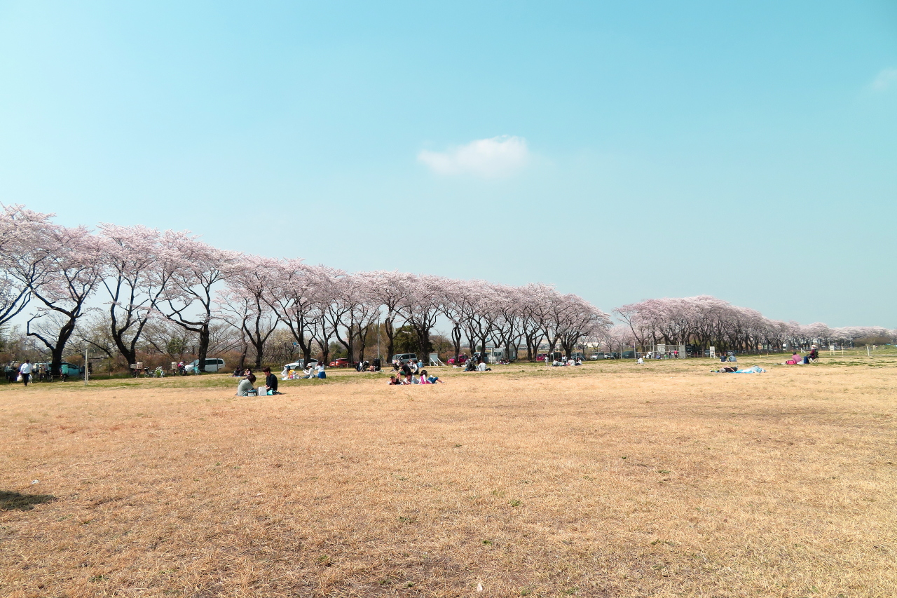さらに、旧上瀬谷通信施設内の広場を期間・時間限定で開放しており、サイドから延々と続く桜並木を眺めることができました。ぜひレジャーシートとお弁当と子供の遊び道具をご持参ください。