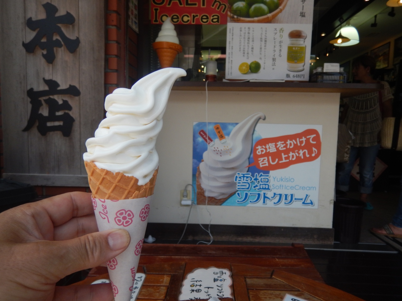 今回は塩を買わず、雪塩アイスクリームを食べてみた。かすかな塩味がして、なかなか美味しかった。(380円だった)