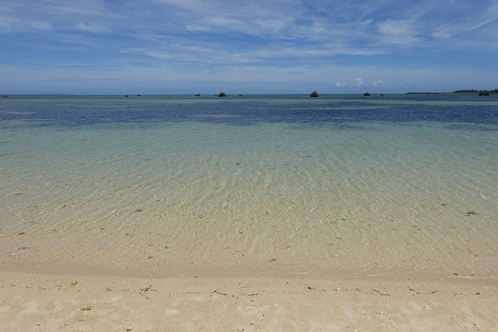 潮の干満で随分と印象が変わるもんですね。それでも遠浅であることに変わりはないので泳ぐのは難しいでしょう。のんびり眺めるか波打ち際で足だけ浸かるくらいかな。