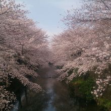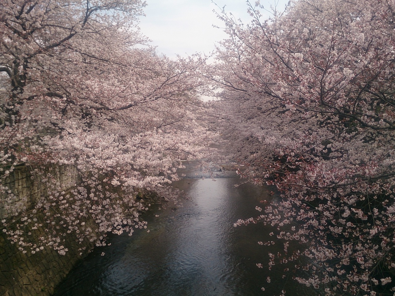 咲き始めから2週間ほど並木を楽しみ、散ってからはピンク色の水面が楽しめます。