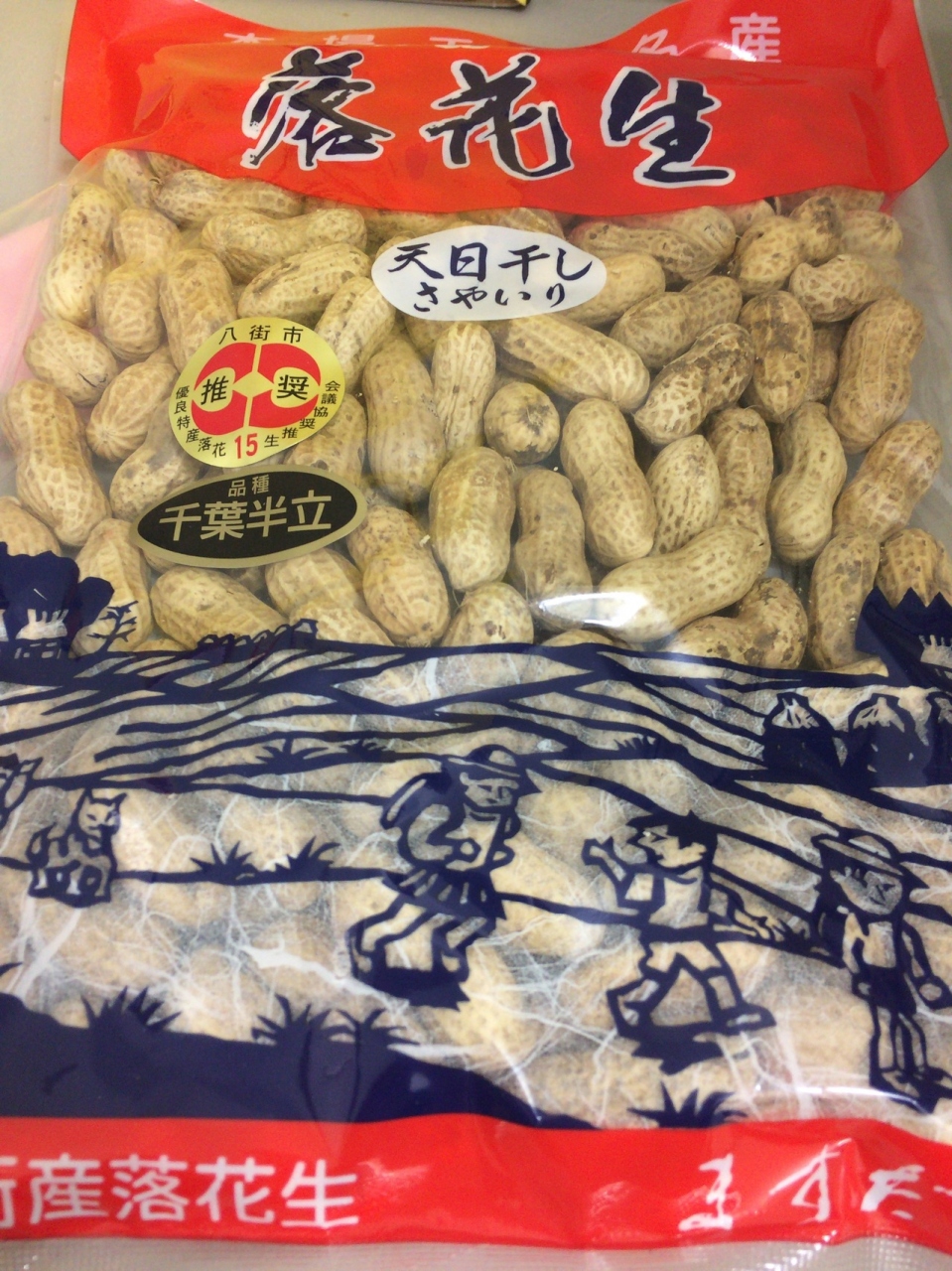 千葉県八街市にある落花生のお店。今回、箱入りで落花生が2袋入っているものをいただきました。