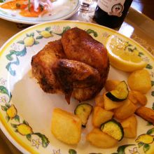 週末のランチ時間に利用しました。混みそうだったので早めの時間に行きましたが、席について食べる頃にお客さんが増えてきたため早めに来て正解でした。ロティサリーチキンのハーフを注文しました。柔らかくて美味しかったです。
