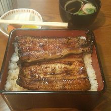 うな重をいただきました。大きなうなぎが2枚乗っていて食べごたえ充分。