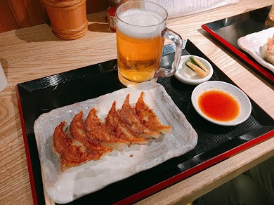 観光を終えて、新幹線で帰路につくまえに寄り道。京都タワーの地下が最近リニューアルしたというので当てもなくぶらついていたら、餃子とビールのセットを発見。ちょうどお店のカウンターも空いていたので着席。