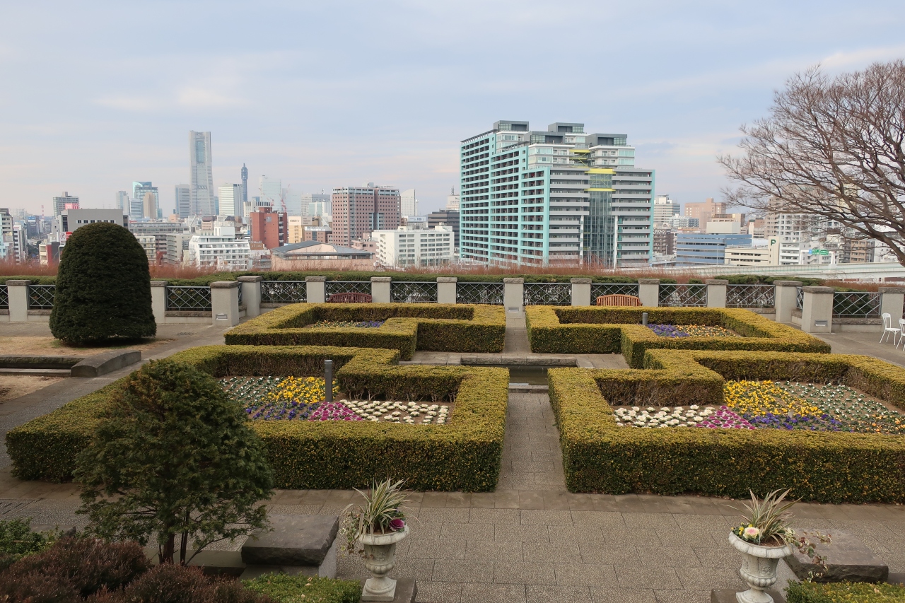 石川町駅から大丸谷坂を回り込む様に上った先に山手イタリア山庭園があります。2つの洋館に目が行きますが、外交官の家の北側には幾何学的なデザインの欧州庭園が広がり、テラスからは中華街方面の眺望が開けとても気持ちの良い庭園です。両洋館は移築されたものですが、欧州庭園に似合っており、どことなく古河庭園を思い出すような佇まいでした。これが無料で見学できるのも横浜市は太っ腹です。