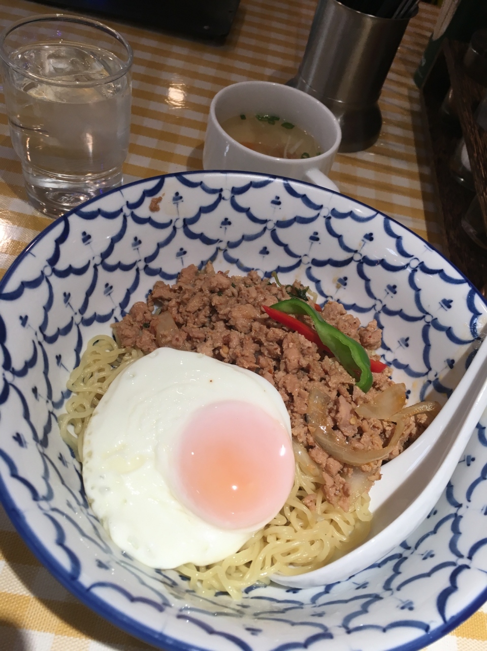 よくランチに使うタイレストランです。屋台風の店内では、様々なタイ料理を楽しむことが出来ます。お気に入りなのはこちらのガパオ麺。ピリ辛な汁なし麺で、エスニックな味わいもあり、あまり他のレストランでは見かけることのない感じがまたお気に入りです。
