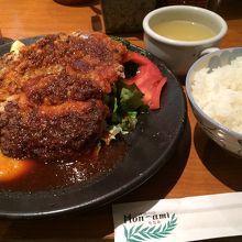 人気メニュー、ハンバーグとエビフライのセット、確かにボリュームがあり食べ応えがありました。