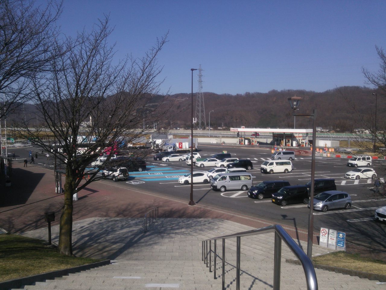長野自動車道の梓川サービスエリア、下り線。とても広い駐車スペースがあり、停めやすいサービスエリアです。
