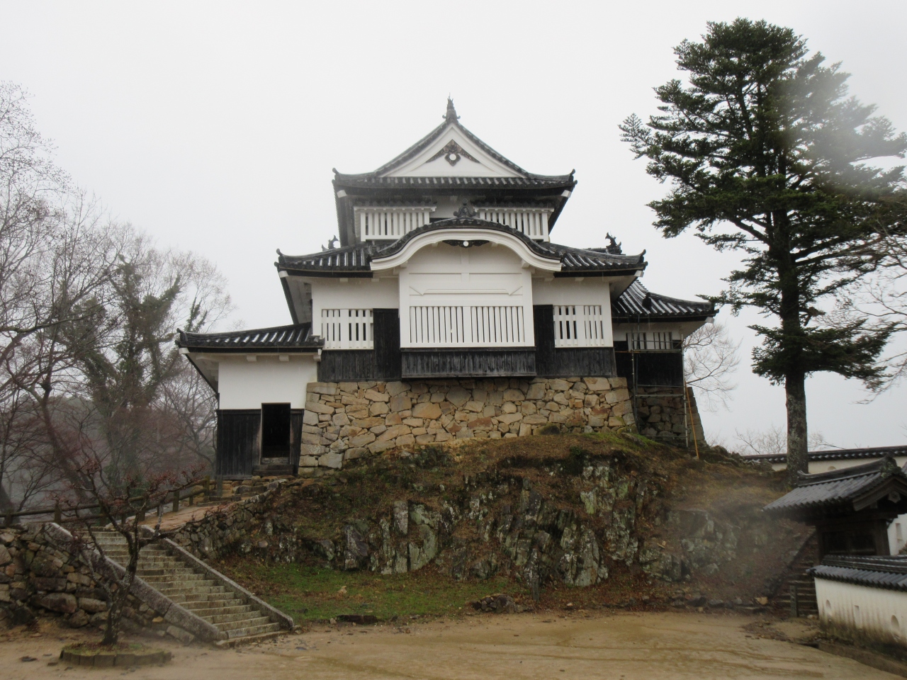 日本一高地にあることから、天空の城と呼ばれている山城です。城だけでなく、城周囲にそびえる10m以上あると思われる巨大な岩壁にも圧倒されました。天守閣の裏には非公開ながら二重櫓を見ることができます。天守閣に隠れるように建っているため、気が付かない観光客も多いようです。平日、電車で訪れる場合は、最寄り駅の備中高梁駅からレンタサイクルか乗り合いタクシーで訪れるしかありません。レンタサイクルは、城の駐車場まで上り坂が続くため、かなりの体力が必要です。乗り合いタクシーは片道500円です。駅から駐車場までは車で10分ほどですが、駐車場からは25分ほど山道を登らなくてはなりません。3月の気温が10度以下の日に訪れましたが、頂上に着くころには汗びっしょりになってしまい、城が山に建っていることを実感できました。休日はバスも出ているようです。