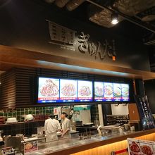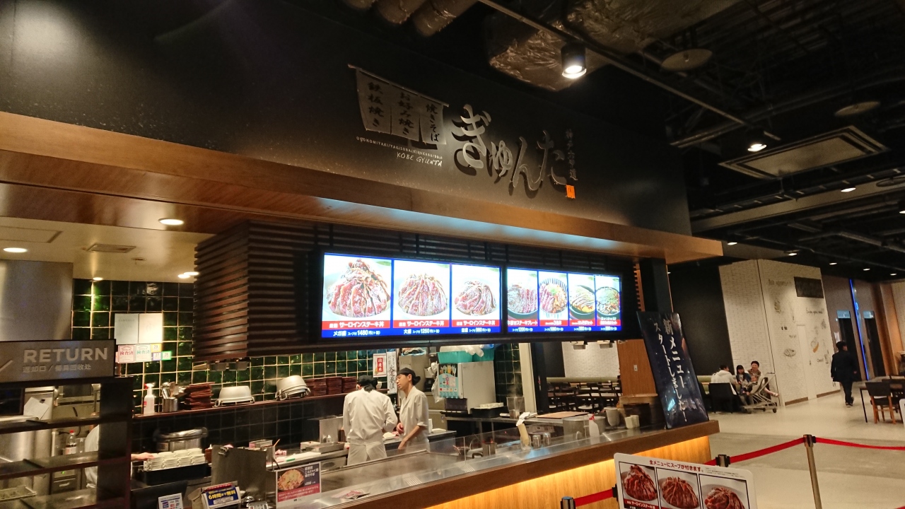幕張にあるイオンモール幕張新都心のフードコート内にあります。神戸で40年以上愛されているお好み焼きと鉄板焼の名店という「ぎゅんた」。
