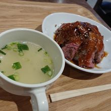 焼きそばなどもあるようですが、やっぱりステーキ丼がお勧めのようなので、それを注文。肉は柔らかかったですが、かなり薄めにスライスされ、麦飯を覆うように盛られていました。ソースの味が濃かったです。