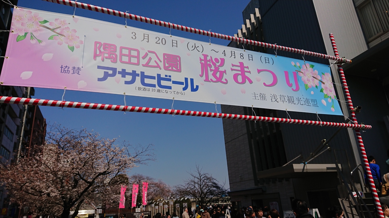 2018年は桜の開花が例年よりもだいぶ早かったのですが、隅田公園は上野公園の桜の開花具合よりも少しゆっくりめで、上野が満開に対して隅田公園の桜は七分咲きくらいで、まだまだ楽しめそうな感じでした。