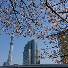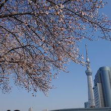 近くにスカイツリーがあるので、スカイツリーと桜を一緒に撮影することができます。