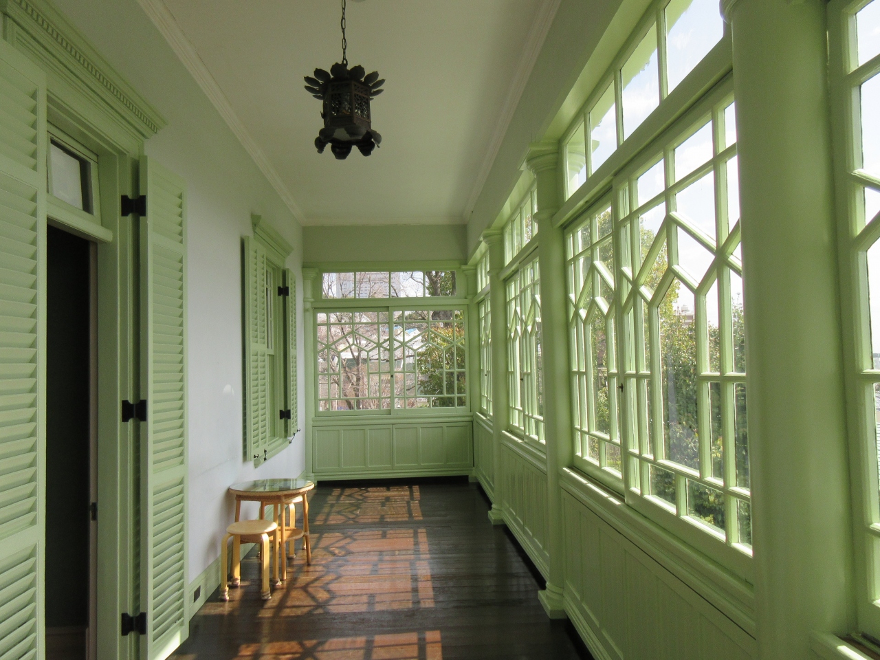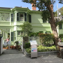 風見鶏の館近くにある淡い緑色をした木造の洋館です。他の洋館に比べ、大きさはそれほどでもありませんが、幾何学模様のベランダやどっしり構えたマントルピース、200年前にフランスで造られたピアノなどが残っています。周りの緑の草木とよくマッチした、さわやかな感じがする洋館です。裏庭には1995年に起きた震災で、館の屋根から落ちた煙突がそのまま残っています。震災の大きさを物語る煙突だと思います。