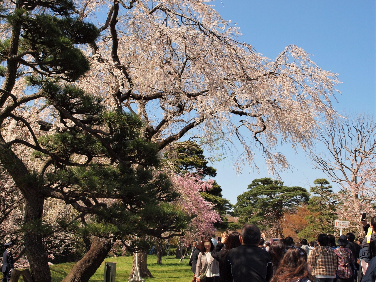 とはいえ、まずまずの混み具合ではありましたが、「立ち止まらないで・・」「写真は端によって・・」という声がしきりに飛び交う中での桜鑑賞は落ち着きませんでした。更には、かなり広い道をほぼ埋め尽くしている人垣の中での写真撮影は至難の業。