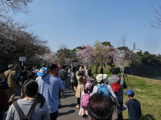 例年になく早い満開となった東京の桜を見るため、一般公開されていた皇居乾通りに出かけてみました。以前、入場制限で入れなかった経験がありますが、この日は日曜というのに、特に問題もなくさっさと入れました。
