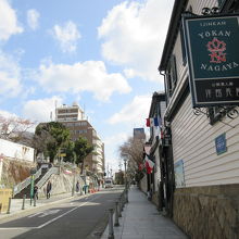 北野異人館街のメインストリートともいうべき通りです。新神戸駅方向から行くと、坂道を上ることになり、上りきったあたりにはベンの家や洋館長屋、英国館など6軒ほどの洋館が建っています。多くの洋館はこの通りから更に坂を上ったところに建っているため、異人館見学の基準になる通りと言えます。他の観光地を巡るシティループバスもこの通りを走っています。