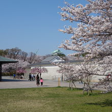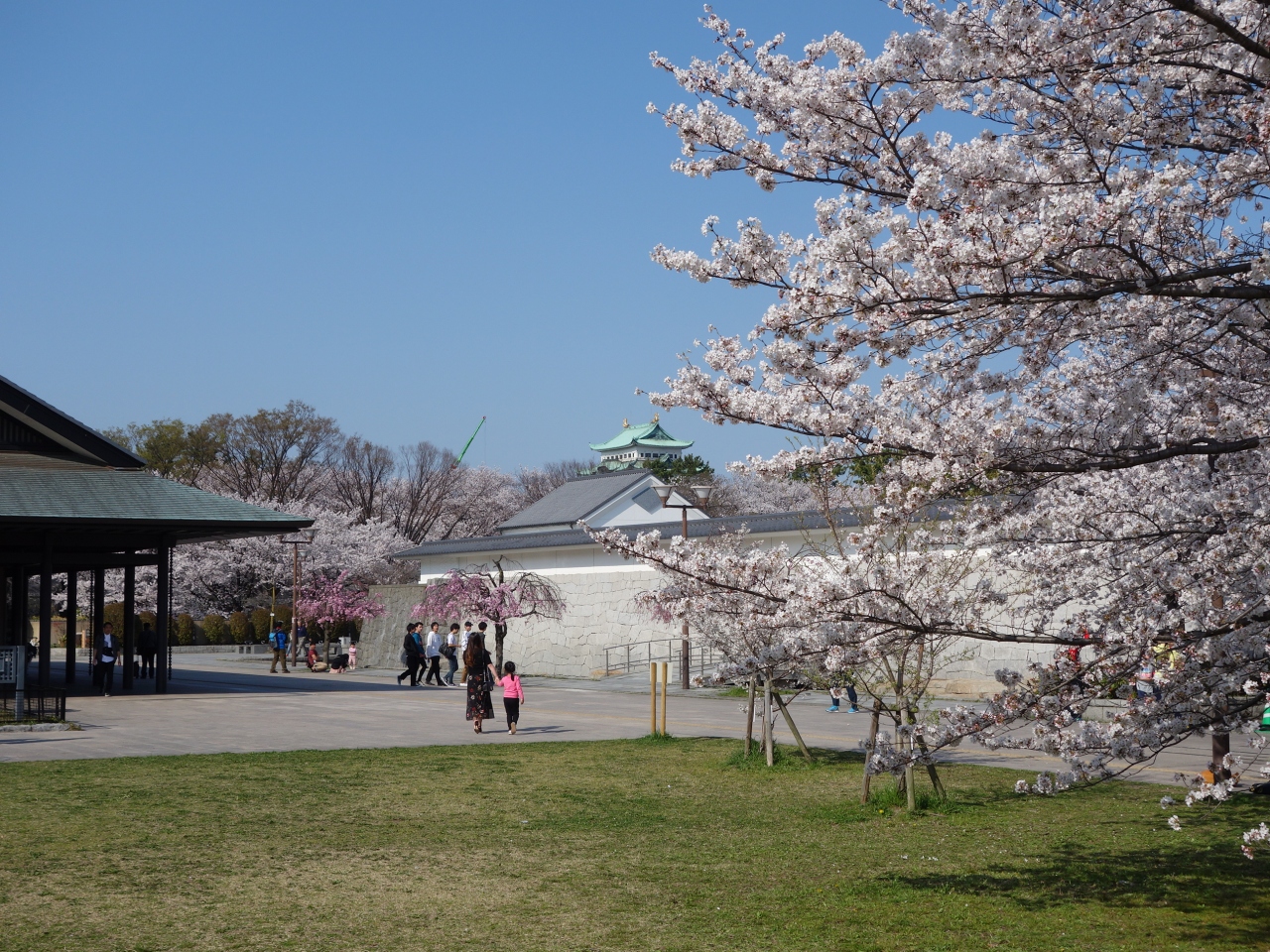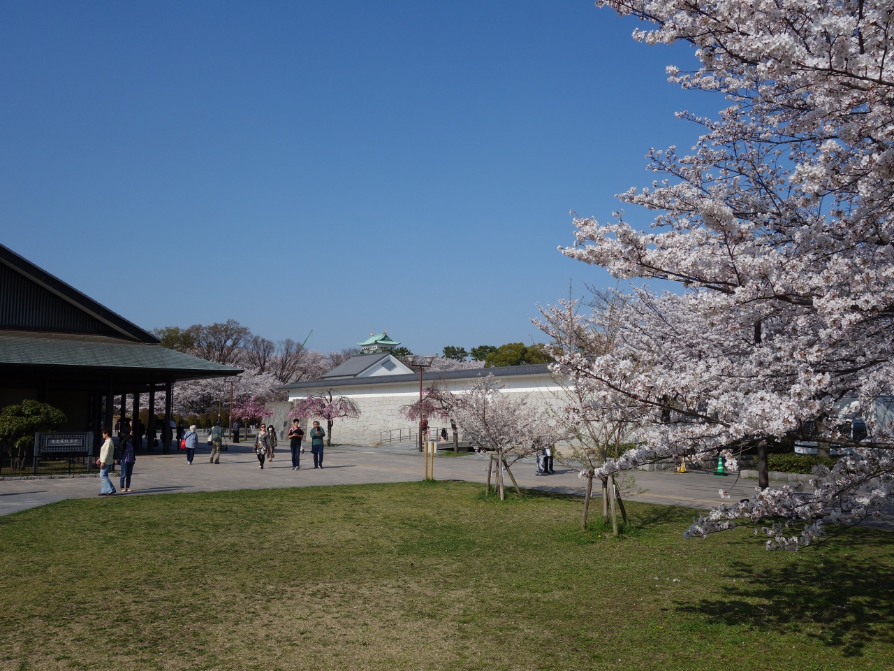 名古屋能楽堂の前のサクラがきれいです。周辺もきれいに整備されているので,とても気持ちのよいところです。サクラは,ソメイヨシノのほかに枝垂れもあって,とくに枝垂れはピンクの色が濃くてとても写真に映えます。地下鉄の丸の内で降りるとよいでしょう。