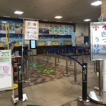 乗船カウンターはまだ営業前で、中央の案内所で購入