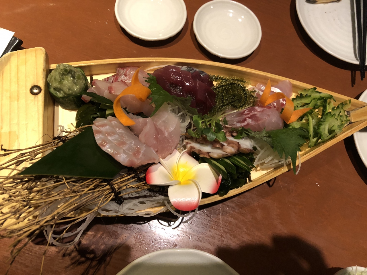 もともと行きたかった近くの店が21時過ぎは子ども連れお断りとのことで代わりの店を探していてたまたま入ったのがこのお店です。大きな飲み会が開催されていて騒々しかったのと横が喫煙者だったので家族連れにはちょっと嫌だなと思っていたのと、チェーン居酒屋っぽい感じがしたので料理自体も最初は期待していませんでした。ただいい意味で裏切られて良かったです。頼んだ料理はどれも美味しく家族も完食しました。刺身盛り合わせ(1600円)を頼んだのですが、地物の刺身でこれがとても美味しかったのでおすすめです。