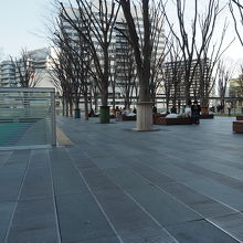 さいたまスーパーアリーナのすぐ横にある広場です。アリーナに入場する前の人たちが待ち合わせなどに利用したりしていて、けっこう混んでいました。等間隔に植えられているけやきの形が面白く、おしゃれな雰囲気のある広場でした。