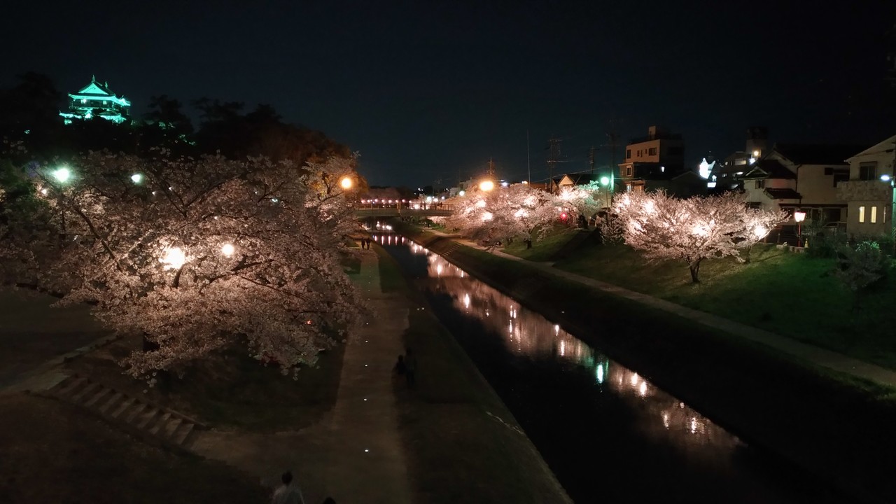 多くの人で賑わっていて、岡崎城と桜がライトアップされ、とてもきれいな景色を見ることができます。