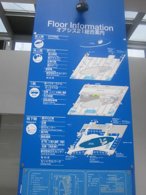 名古屋の繁華街といえば、やはり某アイドルグループの名前の由来ともなっている栄だと思いますが、その中心部に数年前に整備されたオアシス21という施設内の1階にあるのがこちらのバスターミナルです。栄発着のバス路線は多くて、路線別に乗り場を探すのが大変ですし、実はこのバスターミナル以外から発着しているバス路線もありますので、乗り慣れない方は、ある程度迷うことも想定しつつ、時間に余裕をもってバス乗り場に向かうようにして下さい。尚、オアシス直結のバスターミナルなので、バスの待ち合わせ場所探しには苦労しないかなと思います。