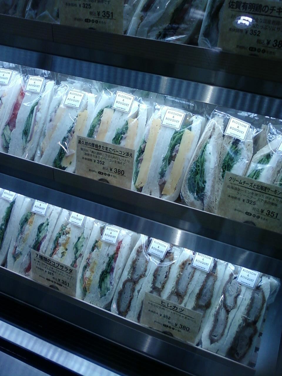 ここのブロッサム&ブーケさんは、新宿駅に連結している、小田急百貨店の地下一階、食品売り場にあります。最近見かけるようになったお店で、確か立川でも見かけたことがあります。有明鶏のチキンカツの入ったサンドイッチボックスにしました。サンドイッチの具材も新鮮で厳選されて種類も豊富、とても魅力的なお店です。