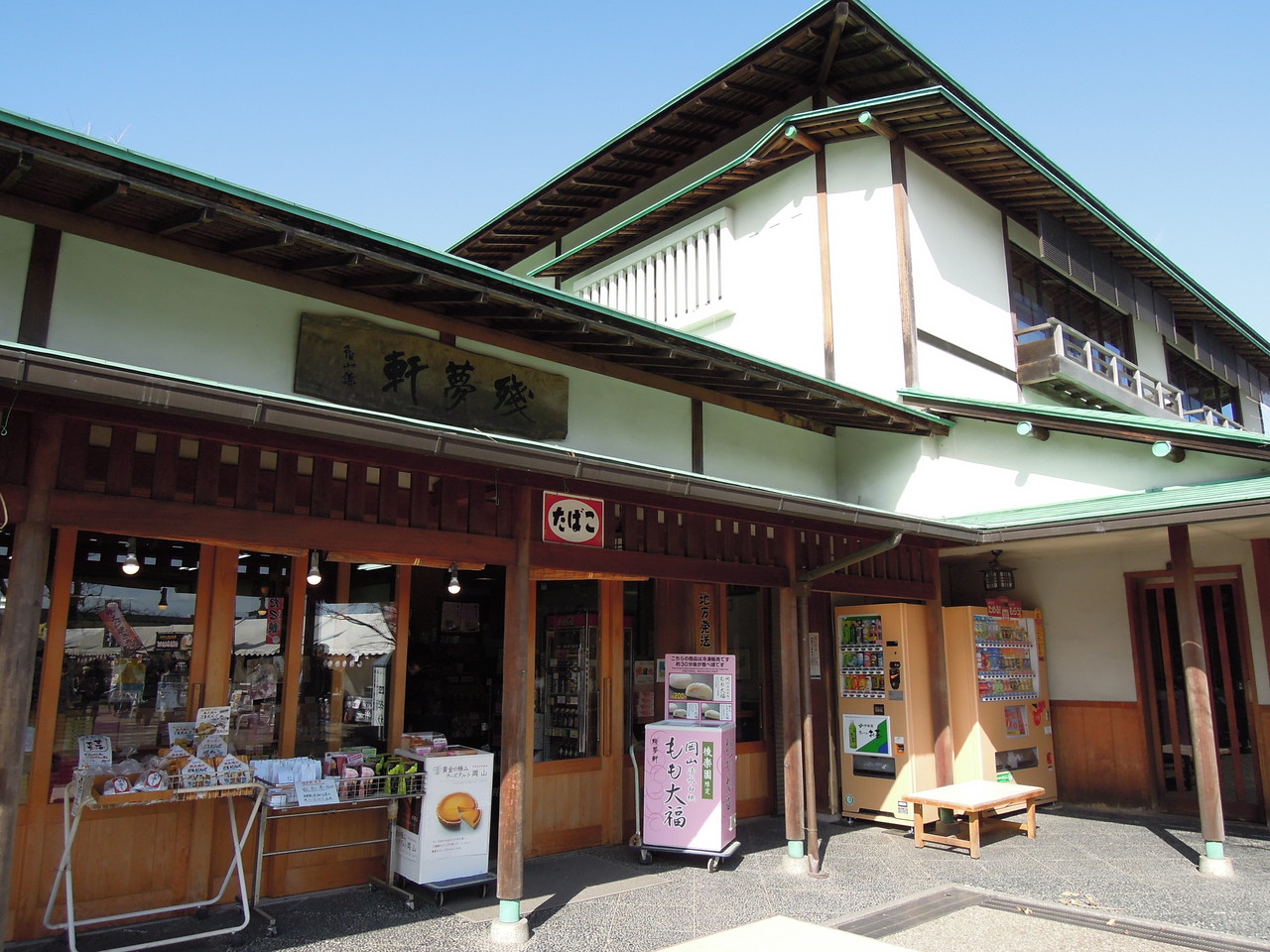 後楽園の入り口にある土産物屋さん。お店の前ではソフトクリームやワッフルを売っていました。店内は意外と広く、お店の奥の方にちょっとした休憩できるスペースがあり、うどんなど軽食メニューもあります。きびだんごと抹茶のセットを頂きました。