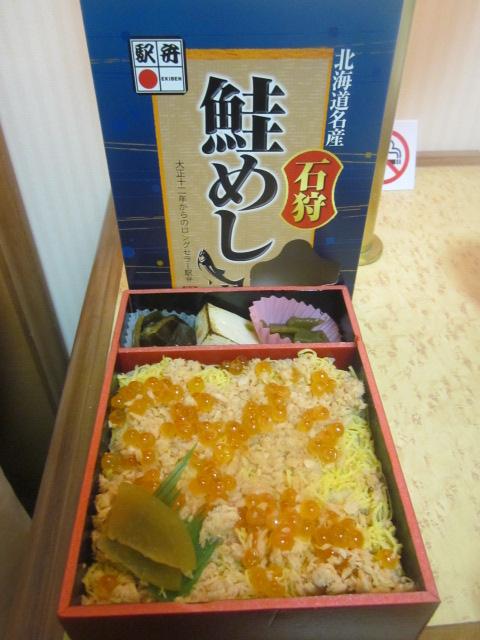 元札幌市民としては、かなりの頻度で頂いてきた弁菜亭のお弁当(札幌駅弁)ですが、今回は久し振りに定番のお弁当二種を父とシェアしました。一つは大正12年から販売されているという「石狩鮭めし」(1000円)、もう一つは最近デザインがリニューアルされたという、「ひぐまの笹寿司」(元・ひぐまの笹弁)(1100円)です。駅に到着後購入し、ホテルの部屋で食べましたが、前者は変わらぬ伝統の味、後者は何となく豪奢になり過ぎた印象を受ける内容でしたが、どちらも美味しかったです。