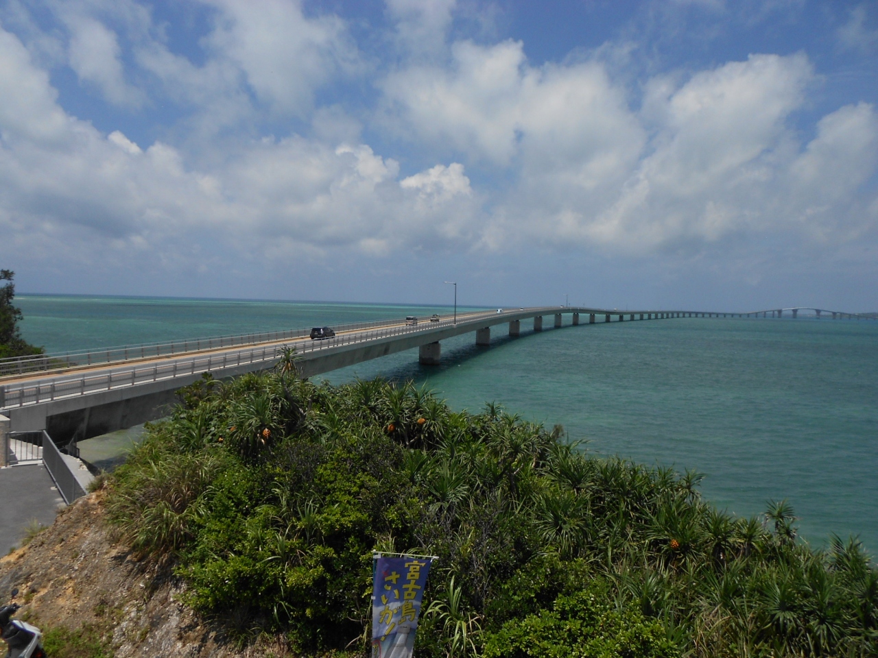 以前は船で渡っていた伊良部島。今回は伊良部大橋が出来てから初めての通行。こんなに素敵な景色なのに無料ってとこが太っ腹です!
