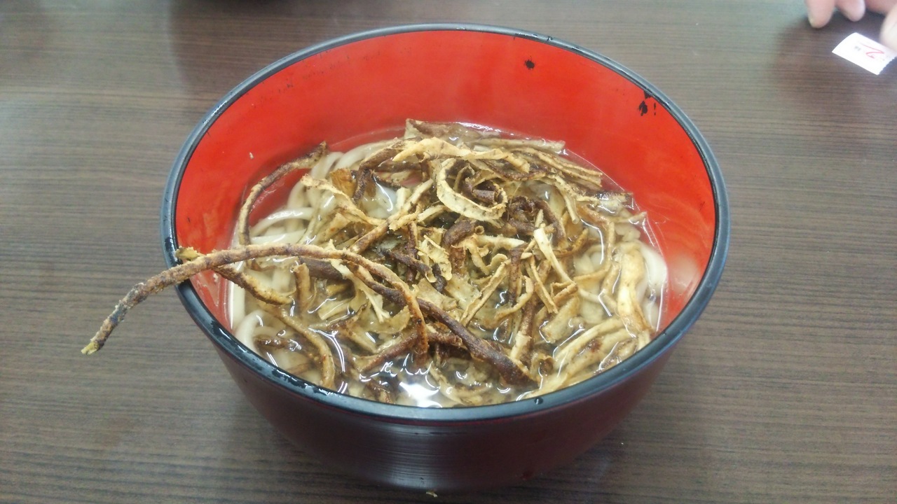 秋芳洞入口に行く道沿いにあるお土産物やさんの中で一番大きい店でした。地元でよく取れるごぼうを麺に練り込み、かつおだしのスープに、ごぼうの天ぷらをたっぷりかけたごぼう麺を頼みました。予想以上に美味しかったです。