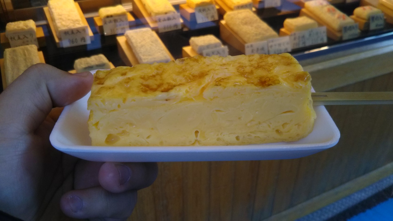 築地場外市場の波除通り沿いにある玉子焼きの専門店です。様々な具材の入った玉子焼きを購入することができますが、店頭で100円にて切り分けた玉子焼きを購入きてその場で焼きたて熱々の玉子焼きを頂くこともできます。種類は2種類(甘いのと甘さ控えめの2種類)あります。私はいつも甘い方を注文するのですが、甘いと言ってもクドい甘さはなくてとても美味しいです。