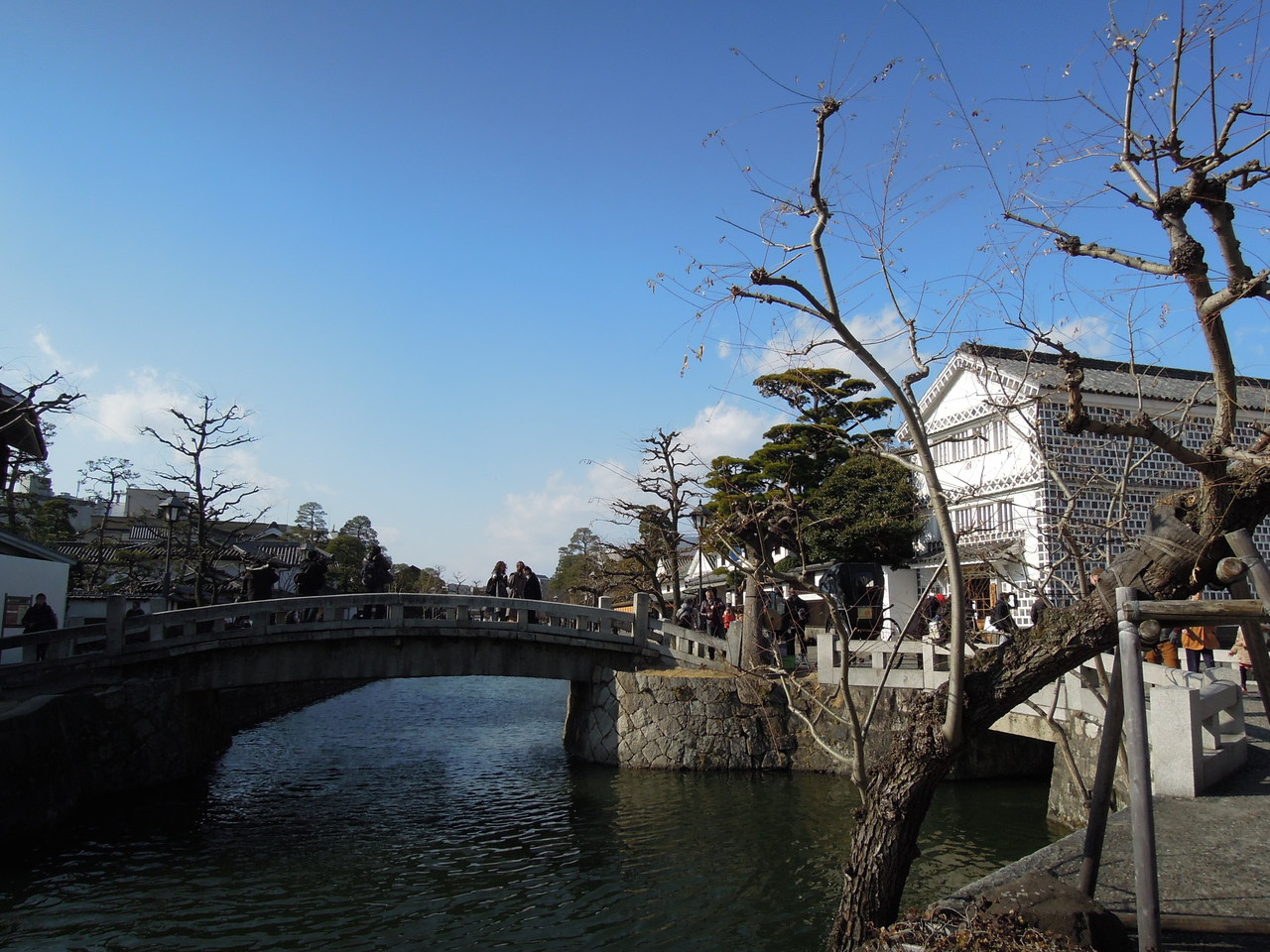 たぶん中国の旧正月と重なっていたのだと思います。まわりの観光客はほとんど中国人でした。冬なので緑が少なく景色は少し淋しい感じはしました。柳並木の美しい時に訪れたい場所でしす。岡山駅からは倉敷駅までは電車で15分、倉敷駅からここまでは歩いて15分ほどでした。