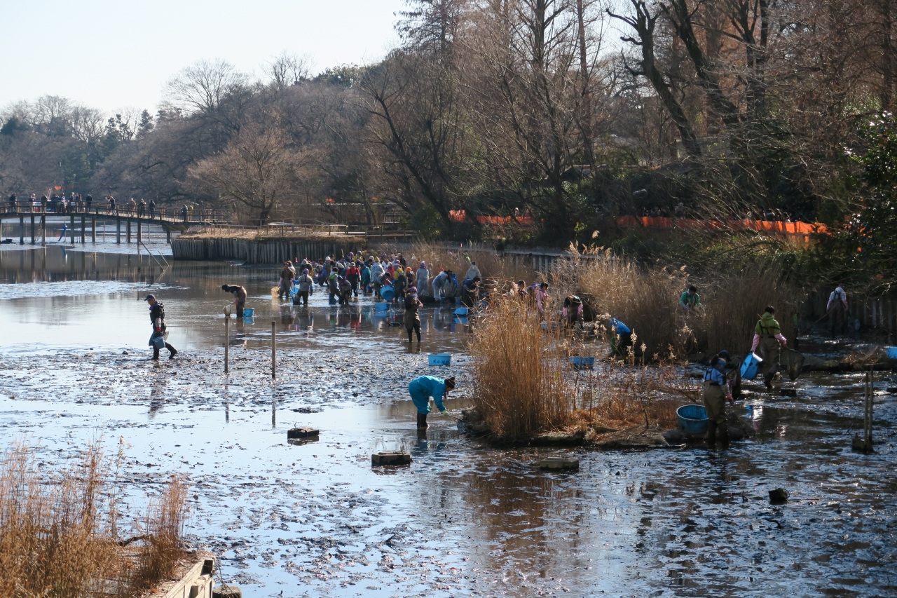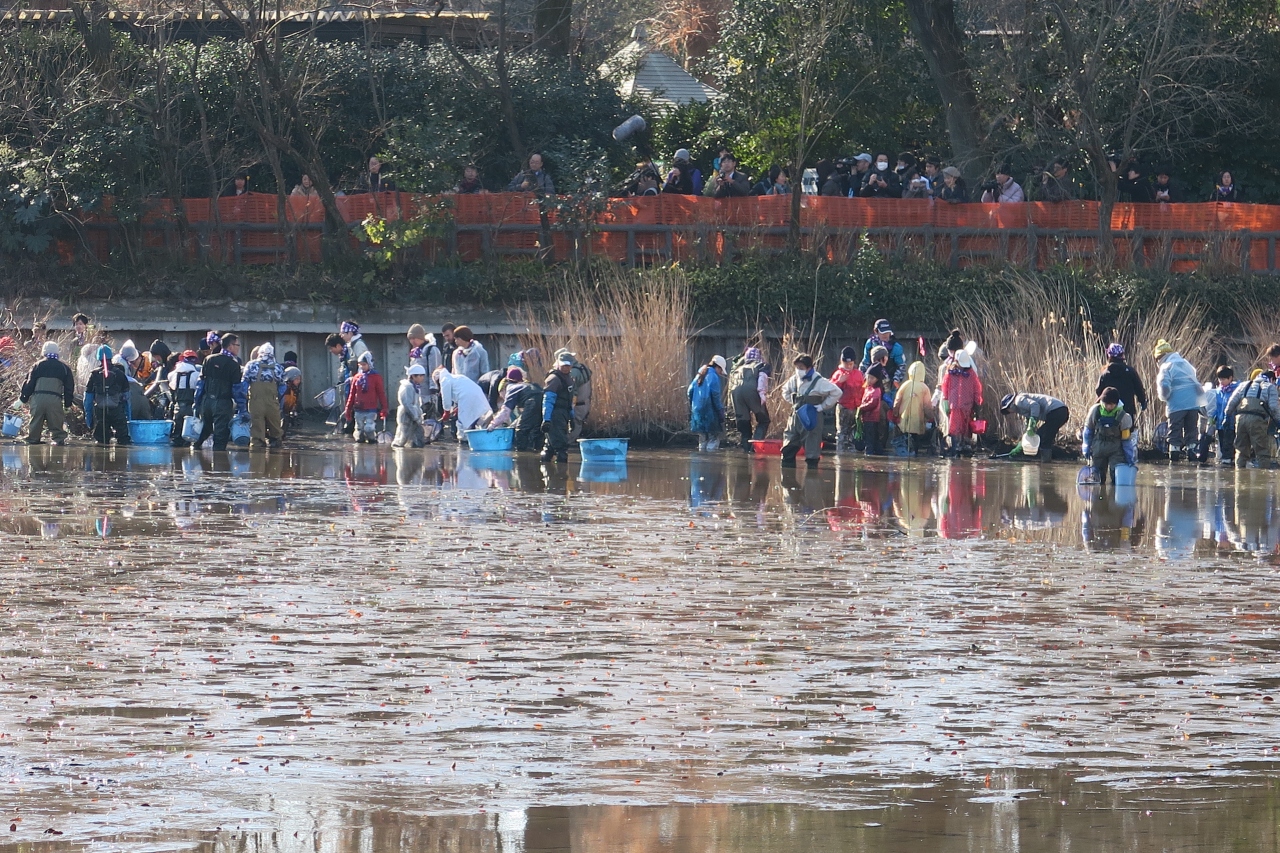 年末より、水抜きが始まり、3回目のかいぼりが行われていた。大勢の方が、池に入り、外来種と、在来種の捕獲作業をされていた。以前は、自転車ゴミなど目立ったが、意識も変わり、さすがに大型ごみは捨てられていない。週末には、散策に訪問し、水が無くなっていく様子が良く判った。