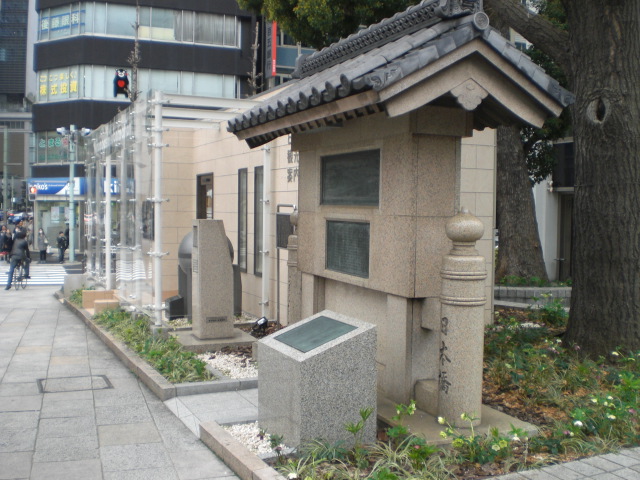日本橋の袂には、狭い範囲内に、いろいろな石碑等が置かれていますので、解説板がどの石碑の解説なのか、迷ってしまいます。