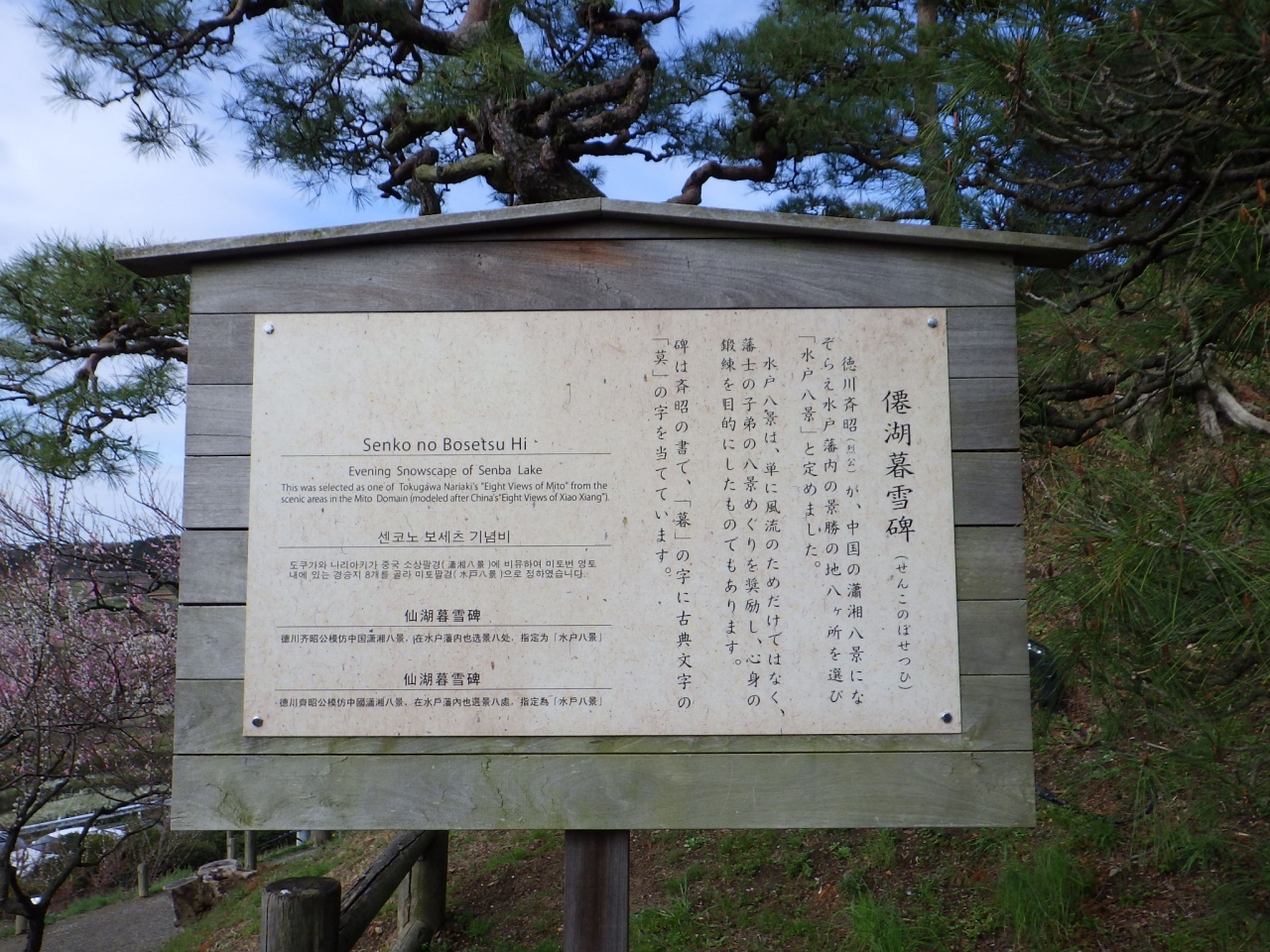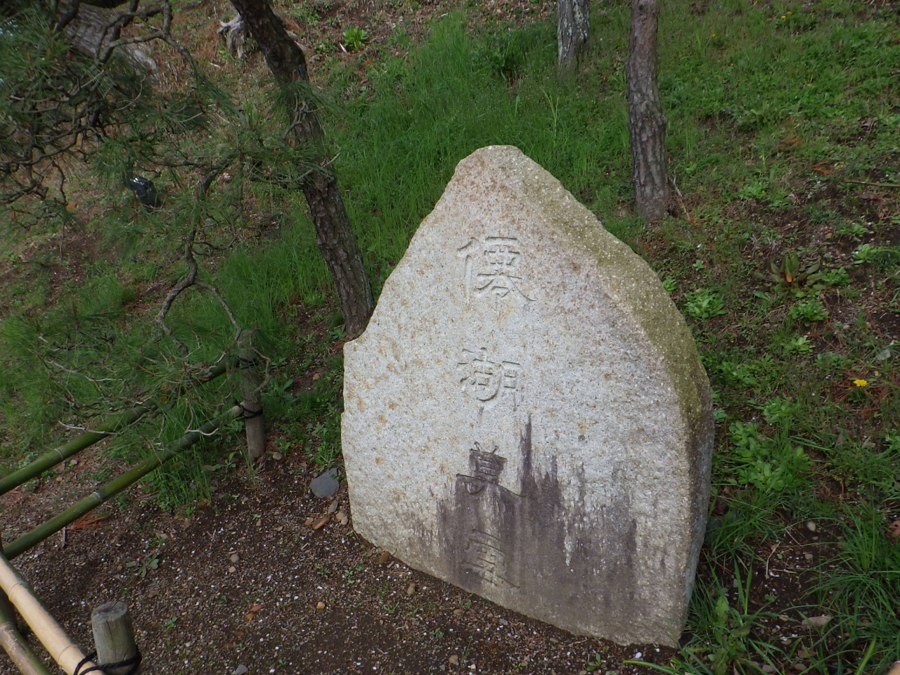 水戸八景のひとつ「僊湖莫雪碑」は園の隅のほうを