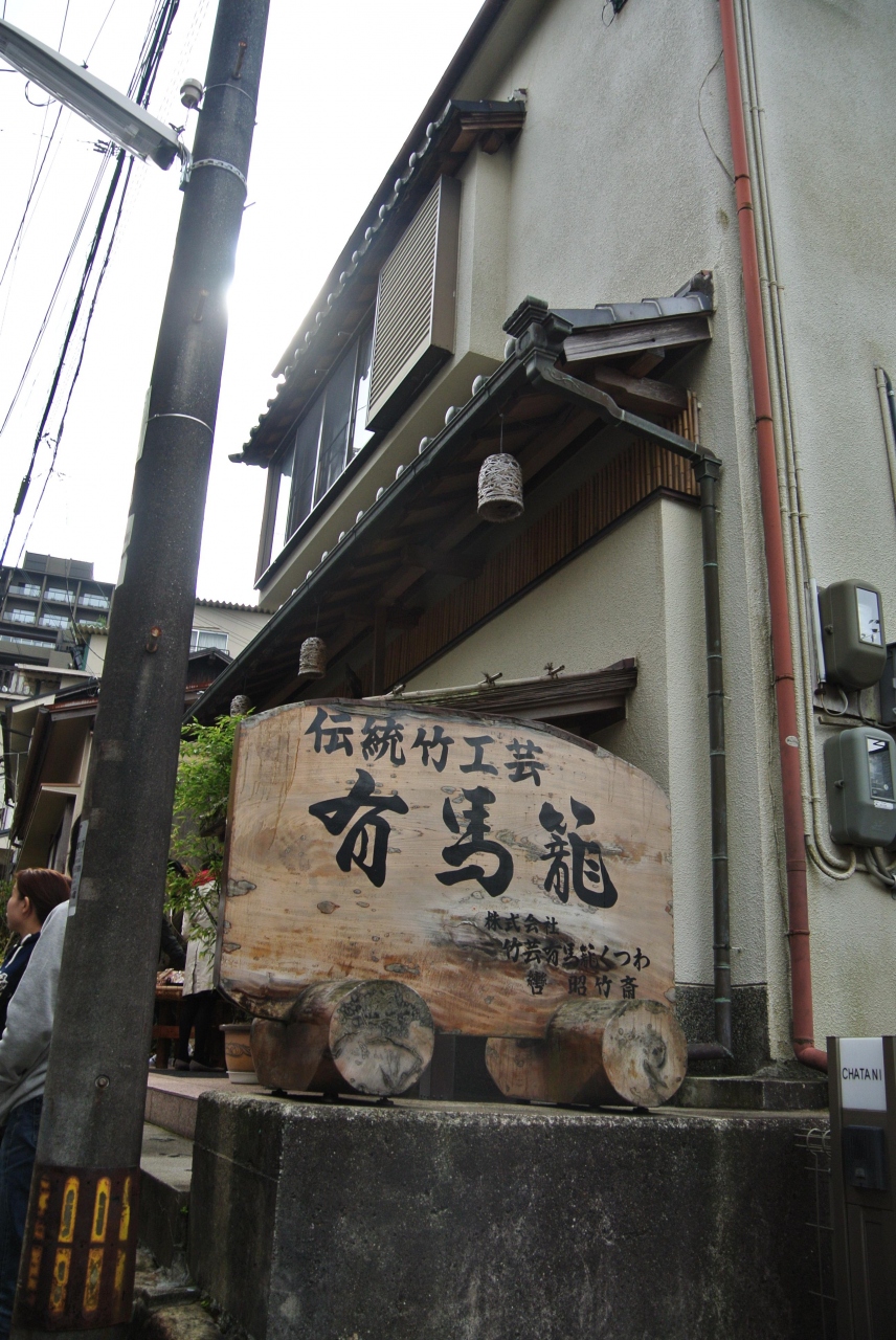 炭酸泉源に行く途中に見つけたお店です。この店あたりまで来ると少し観光客の数は減りますが、お店はお客さんでいっぱいでした。このような伝統工芸が有馬にあるのは初めて知りました。とても細かい目の花籠は見事でしたが、土産用や旅の記念には手ごろな大きさ・値段の小物もあります。