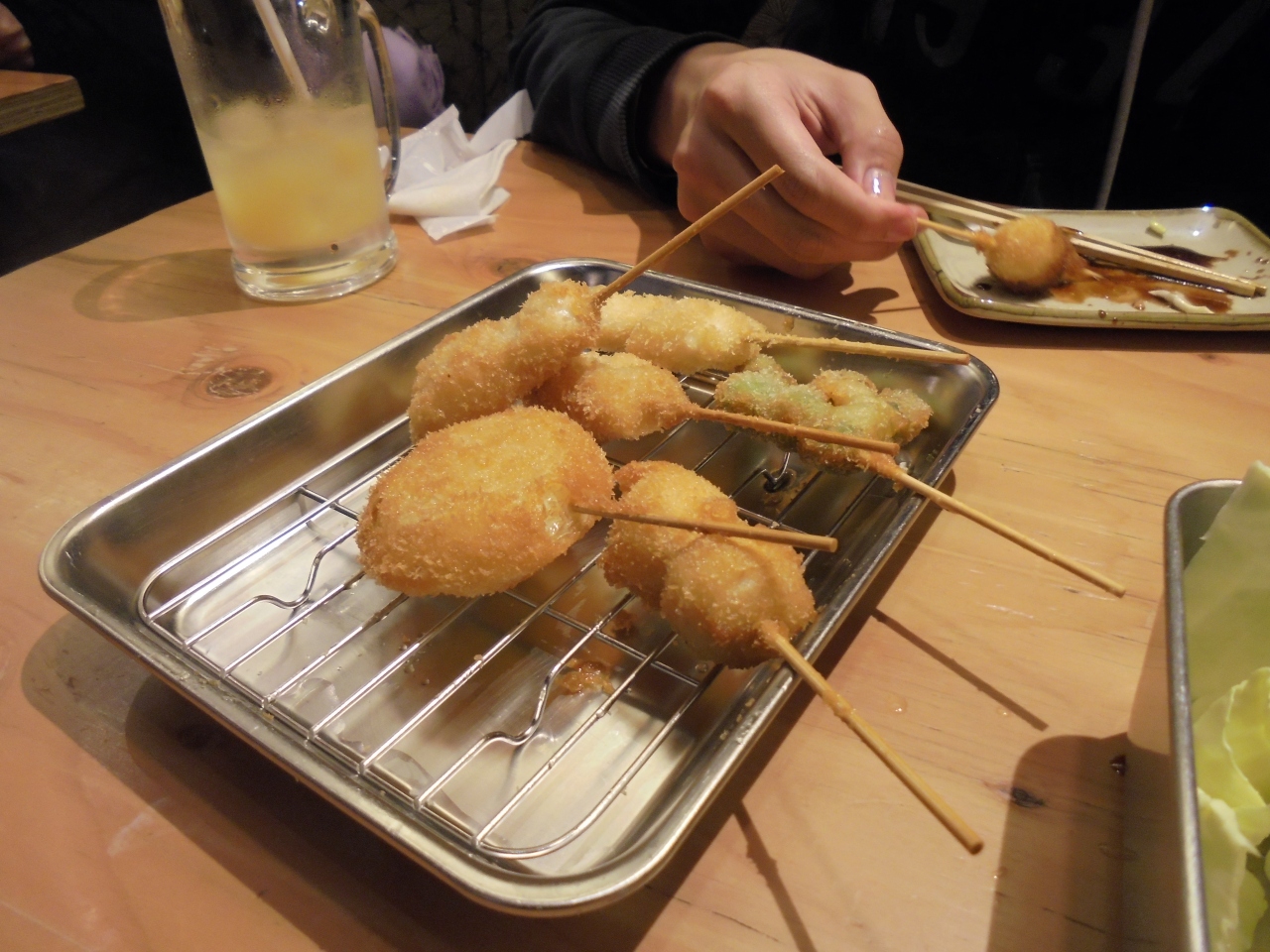 やはり大阪に行ったからには串カツが食べたい。ツアー特典のチケットに「横綱」の市内全店で利用できる500円券があったことから、宿泊場所へのアクセスも良いお初天神店へ入りました。