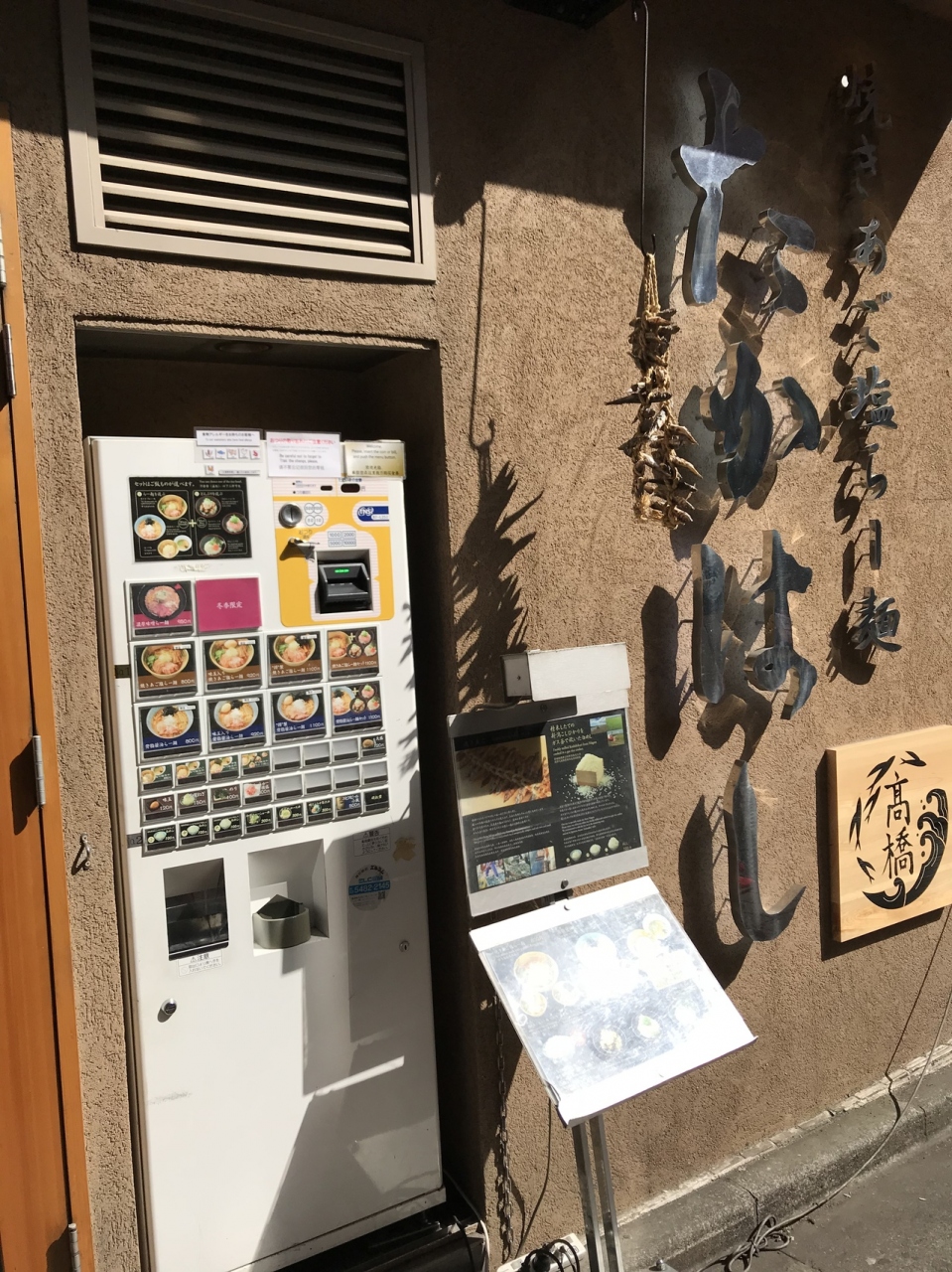 西武新宿駅からは近いものの決してわかりやすい場所ではないですが、ランチでもディナーでもない時間でも大行列です。焼きアゴ塩の香りがなんとも言えず食欲をそそります。焼きアゴ塩らーめん800円からで、あとはトッピングです。